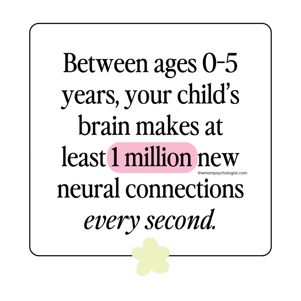 In fact, your child’s brain makes at least 1 million new neural connections every SECOND – far more than any other time in their life.