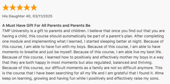 TMP University isn't just another online parenting course. It's a dynamic, supportive community where theory meets practice.